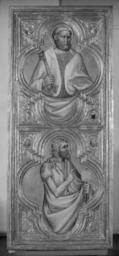 | Keywords: Olivuccio di Ciccarello da Camerino - Madonna and Child with Saints Peter, Paul, John the Baptist, and Francis - Walters 37699 - Front Left.jpg The intact condition and unique format of this altarpiece make it a truly remarkable painting The central panel depicts a stunning Madonna and Child flanked on the left by half-length figures of St Peter above St John the Baptist and on the right by St Paul above St Francis of Assisi The Virgin's robe is carved and decorated with gold leaf that shimmered in the candlelight a surface treatment common in Byzantine paintings Because of the crescent moon at her feet the rays emanating from her body and the gold curling through her cloak the Virgin seems to hover behind the frame The molding of the inner frame crops the composition like an open window offering a glimpse into the sacred timeless realm beyond On the back of the left wing are two preparatory drawings by the artist For more information on this piece please see Zeri catalogue number 41 pp 68-71 ca 1410 1420 Medieval oil and gold leaf on panel Central panel H including frame 63 x W 30 3/8 x D 1 1/4 in 160 x 77 2 x 3 1 cm ; Left wing H including frame 63 1/4 x W 27 9/16 x D 1 1/4 in 160 6 x 70 x 3 1 cm ; Right wing H including frame 63 5/16 x W 27 5/16 x D 1 1/4 in 160 8 x 69 3 x 3 1 cm accession number 37 699 22289 Don Marcello Massarenti Collection Rome prior to 1897 mode of acquisition unknown 1897 catalogue no 30 as Tuscan School early 15th century Henry Walters city Baltimore Walters Art Museum Henry Walters Acquired by Henry Walters with the Massarenti Collection 1902 Transcription Inscribed on Virgin's halo AVE MARIA GRATIA PLENA; Translation Inscribed on Virgin's halo Hail Mary full of grace; Transcription Inscribed on the bottom left panel in two roundels P E; Transcription Inscribed on bottom of right panel in two roundels T R; Inscribed on scroll held by John the Baptist ECCE/AGNVS/DEI QVI/TOLLIS/PECCATA MVNDI; Translation Inscribed on scroll held by John the Baptist Here is the Lamb of God who eliminates the sins of the world God's Minstrel St Francis of Assisi The Walters Art Gallery Baltimore 1982 place of origin Marche Italy Walters Art Museum license 2D Medieval art in the Walters Art Museum Olivuccio di Ciccarello da Camerino Paintings in the Walters Art Museum Media contributed by the Walters Art Museum needs category review |