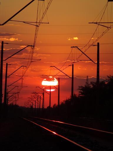 Keywords: olkusz poland sunset landscape railroad tracks red sky