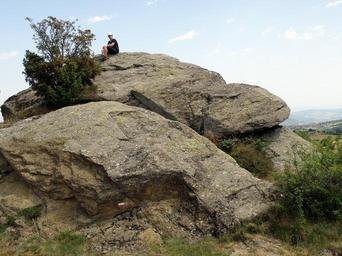 | Keywords: Olloix Rochers2.JPG fr Olloix comm du Puy-de-Dôme France région Auvergne Rochers affleurant sur le plateau entre Riberolles hameau ruiné sur les bords de la Monne et le bourg d'Olloix à env 1 km au nord-est de celui-ci Au loin contre le bord droit de la photo village de Saint-Sandoux 2011-07-12 own Torsade de Pointes cc-zero Uploaded with UploadWizard Olloix |