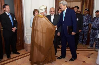 | Keywords: Oman Foreign Minister bin Alawi Welcomes Secretary Kerry to Trilateral Negotiations About Iran's Nuclear Program.jpg en Foreign Minister Yusuf bin Alawai of Oman greets U S Secretary of State John Kerry in Muscat Oman on November 9 2014 before he meets with Baroness Catherine Ashton of the European Union and Foreign Minister Javad Zarif of Iran to negotiate about the future of Iran's nuclear program State Department photo/ Public Domain 2014-11-09 03 25 23 http //www flickr com/photos/9364837 N06/15743803111/ U S Department of State other versions 23 617531 58 583439 PD-USGov PD-USGov Bilateral relations of the United States Uploaded with UploadWizard |