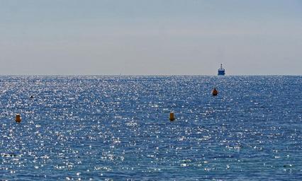 Keywords: on the high seas horizon mediterranean buoys motor yacht back light blue waters ship water sea wave light côte d ' azur south of france yacht