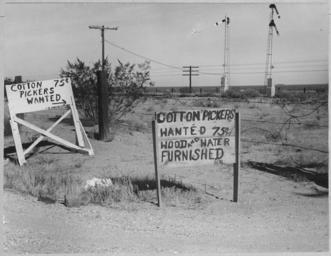 | Keywords: On Highway 80, Maricopa County, Arizona. Ranch advertisement during cotton harvest. Highway signs re . . . - NARA - 522289.tif Scope and content Full caption reads as follows On Highway 80 Maricopa County Arizona Ranch advertisement during cotton harvest Highway signs reading cotton pickers wanted are but the last stage in the process of attracting seasonal laborers to Arizona from areas as remote as Yakima Valley Washington and the bootheel of Missouri General notes 522289 Local identifier 83-G-44120 Department of Agriculture Bureau of Agricultural Economics Division of Economic Information ca 1922 - ca 1953 NARA-Author Lange Dorothea 1895-1965 Photographer 1372774 <br /> Still Picture Records Section Special Media Archives Services Division NWCS-S National Archives at College Park 8601 Adelphi Road College Park MD 20740-6001 11/1940 Record group Record Group 83 Records of the Bureau of Agricultural Economics 1876 - 1959 Record group ARC 412 Photographic Prints Documenting Programs and Activities of the Bureau of Agricultural Economics and Predecessor Agencies compiled ca 1922 - ca 1947 documenting the period ca 1911 - ca 1947 Series ARC 521048 File unit File unit ARC Variant control numbers NAIL Control Number NWDNS-83-G-44120 yes Other versions <gallery> File On_Highway_80 _Maricopa_County _Arizona _Ranch_advertisement_during_cotton_harvest _Highway_signs_re_ _ _ _-_NARA_-_522289 tif tif File On_Highway_80 _Maricopa_County _Arizona _Ranch_advertisement_during_cotton_harvest _Highway_signs_re_ _ _ _-_NARA_-_522289 jpg jpg </gallery> NARA-cooperation PD-USGov Dorothea Lange Maricopa County Arizona NARA TIF images with categorized JPGs |