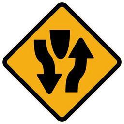 Keywords: oncoming traffic opposing traffic two-way traffic barricade barrier road sign roadsign street sign driving warning attention traffic traffic sign