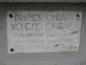 | Keywords: Ondava spring 2.jpg Ondava spring in the village of Ondavka Bardejov county Slovakia The table says Ondava spring in Slovak and Rusyn Built by Ministry of Agriculture of Czechoslovak Republic in 1934 Źródło Ondavy we wsi Ondavka powiat bardejovski Słowacja own 5 VIII 2006 User PM / pl Wikipedysta P Ondava Springs of Slovakia Plaques referencing 1934 Multilingual signs in Slovakia |