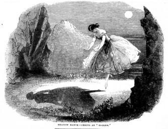 | Keywords: Ondine - Illustrated London News.png The Shadow Dance at the première of the ballet Ondine choreography by Jules Perrot and music by Cesare Pugni Original article follows <center> H<small>ER</small> M<small>AJESTY'S</small> T<small>HEATRE</small><br /> <small>THE SHADOW DANCE FROM ONDINE </small> </center> Of its own beauty is the mind diseased <br />And fevers into false creation says Byron; but we require some stronger more satisfactory reason why in sober health we become occasionally indifferent to the beautiful realities of our own earth and fly to the immortals for ecstacies that after all are but a poet's dream Everybody is not a Numa and therefore cannot indulge in the blissful phantasy that he holds intercourse with moulds beyond the earth; and yet we would if we could such is our longing after immortality Egeria sweet creation of some heart<br />Which found no mortal resting-place so fair<br />As thine ideal breast how often hast thou been conjured up to our imagination But hence unreal mockeries hence and leave us to our task not of criticism on the present occasion but that of recording one of the most beautiful productions that any stage ever boasted of The ballet of Ondine everybody by this time knows is founded on La Motte Fouqué's fanciful and interesting story of Undine but does not adhere very faithfully to the original Never mind narration must give way to impersonation particularly when we see such a step-revealing goddess as Cerito sic should be Cerrito in the principal character Her dancing the pas de l'ombre which is illustrated above is in the highest degree beautiful and inclines us to agree more than ever with the old Greek assertion that Dancing is silent poetry Nothing can be more enchanting than Cerito's innocent surprise when she first sees her shadow and thinks it or makes you believe she thinks it to be something tangible and lovely in outline as herself The dioramic effect of the scene in which this pas occurs reflects the highest possible credit upon Grieve the artist No other stage-painter is so acquainted with the use of compound lights commonly called mediums It is a splendid specimen of skill in the art and it is only to be regretted that such things are so evanescent for we could see them a thousand times with yet unwearied eyes Although Cerito is la déesse of the scene we must not be indifferent to the exquisite grace of Guy Stephan She is one who could take the place of any more talked-of rival and leave criticism nothing to do but applaud with rapture In fact the danseuse that in the presence of Taglioni was honoured with an encore of one of her pas must be allowed to range herself on level with the best Illustrated London News 1843-07-15 author PD-old Ondine 1843 Fanny Cerrito 19th-century engravings of ballerinas 1843 engravings ILN 1843 |