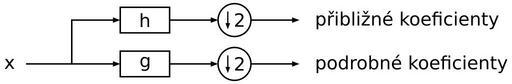 Keywords: One level of DWT.svg cs Jeden stupeň diskrétní vlnkové transformace s own cs User DaBler 2009-12-12 File Wavelets - DWT svg created with Inkscape Wavelets
