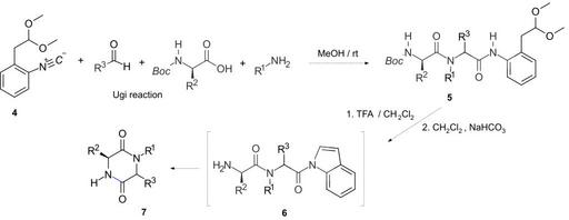 Keywords: One-pot synthesis of N-substituted 2,5-DKPs via indolamide.svg en One-pot synthesis of N-substituted 2 5-DKPs via indolamide 2016-05-16 own Alandb other versions cc-zero Diketopiperazines