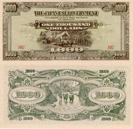 | Keywords: One thousand dollar note issued by the Japanese Government during the occupation of Malaya, North Borneo, Sarawak and Brunei (1944).jpg Japanese Invasion Money - Malaysian 100 Bill PD-Japan original upload log page en wikipedia Malaysian_100 jpg 2007-10-30 03 37 Ericdohio 496×482×8 58750 bytes <nowiki>Japanese Invasion Money - Malaysian 100 Bill</nowiki> 2007-10-30 03 37 Ericdohio 496×482×8 58750 bytes <nowiki>Japanese Invasion Money - Malaysian 100 Bill</nowiki> Japanese government-issued dollars in Singapore Malaya North Borneo Sarawak and Brunei History of Malaysia Animals on banknotes 1944 banknotes Banknotes with a face value of 1000 Green banknotes Animal-powered carts on banknotes |