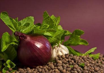 Keywords: onion garlic seasonings spices pepper black pepper herbs still life vegetables food tasty purple green salad garden stuff