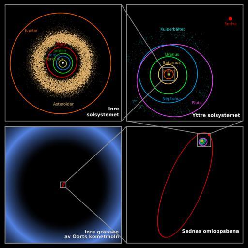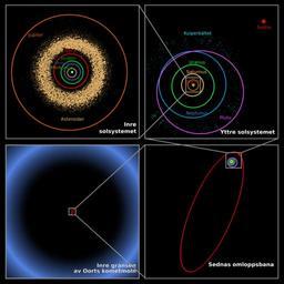 | Keywords: Oort cloud Sedna orbit sv.svg Swedish translation of File Oort cloud Sedna orbit svg Dessa fyra rutor visar positionen för det transneptunska objektet 90377 Sedna vilken befinner sig i utkanten av solsystemet Varje ruta zoomar successivt ut for att ge ett sammanhang http //commons wikimedia org/wiki/File Oort_cloud_Sedna_orbit svg Image courtesy of NASA / JPL-Caltech / R Hurt Original text courtesy of NASA / JPL-Caltech SVG conversion by Holek Translation to Swedish by Njaelkies Lea <span class signature-talk >talk</span> PD-USGov-NASA Oort cloud Sedna |