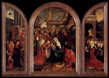 | Keywords: Oostsanen Triptych of the Adoration of the Magi.jpg Artwork creator Jacob Cornelisz van Oostsanen LangSwitch Triptych with the adoration of the Magi <ref>https //www rijksmuseum nl/collectie/SK-A-4706 Drieluik met de aanbidding der koningen - Rijksmuseum Amsterdam - National Museum for Art and History title translated by Wikimedia Commons </ref> Trittico con l ™Adorazione dei Magi <ref>Annemarie Vels Heijn red ; 1995 Rijksmuseum Amsterdam I capolavori della collezione Amsterdam Rijksmuseum-Stichting p 11 ISBN 90-6611-224-7 </ref> Drieluik met de aanbidding der koningen <ref>https //www rijksmuseum nl/collectie/SK-A-4706 Drieluik met de aanbidding der koningen - Rijksmuseum Amsterdam - Nationaal Museum voor Kunst en Geschiedenis </ref> Alternate titles LangSwitch Triptych of the Adoration of the Magi <ref>http //www wga hu/html/c/corneliz/triptyc1 html Triptych of the Adoration of the Magi by CORNELISZ VAN OOSTSANEN Jacob Web Gallery of Art </ref> <br />Triptych of the Adoration of the Magi Donors and Saints <ref>http //www rijksmuseum nl/aria/aria_assets/SK-A-4706 lang en Adoration of the Magi - Rijksmuseum Amsterdam - Museum for Art and History </ref> Drieluik met de Aanbidding der koningen stichters en heiligen <ref>http //www rijksmuseum nl/aria/aria_assets/SK-A-4706 lang nl Aanbidding der koningen - Rijksmuseum Amsterdam - Museum voor Kunst en Geschiedenis </ref> <br />Veelluik met de aanbidding van de koningen en de donorportretten van Claes Bouwensz en Volckgen Jansdr en hun gezin <ref>http //www rkd nl/rkddb/dispatcher aspx action search database ChoiceImages search priref 39724 RKDimages Kunstwerknummer 39724 </ref> 1517 Oil on panel cm 83 56 central panel cm 83 25 each wing Amsterdam Museum object history by 1792 Franciscan convent near Messiera date 1823 04 purchase King William II of the Netherlands 1849 Brussels L J Nieuwenhuys art dealer Brussels 1850 10 14 acquisition Prince Frederik of the Netherlands 1881 provenanceEvent 1883 bequest Princess Marie of the Netherlands Fürstin zu Wied 1910 by 1932 Karl Haberstock art dealer Berlin 1967 07 05 purchase Edward Speelman auction at Sotheby's London Washington/The Hague provenanceEvent 1978 purchase Rijksmuseum Amsterdam Amsterdam inv no SK-A-4706 J William Middendorf II 2004 10 lent Amsterdams Historisch Museum Amsterdam Rijksmuseum Amsterdam WGA link http //www wga hu/art/c/corneliz/triptyc1 jpg http //www wga hu/html/c/corneliz/triptyc1 html SB 6410 Other versions <gallery> File Oostsanen Sts Christopher and Anthony jpg Exterior </gallery> PD-old-100 LangSwitch Notes Noten <references /> ImageNote 1 645 247 46 28 1256 900 2 LangSwitch Dated Gedateerd 1517 ImageNoteEnd 1 ImageNote 2 80 104 72 74 1256 900 2 LangSwitch Coat of arms unidentified Heraldisch wapen ongeïdentificeerd ImageNoteEnd 2 ImageNote 3 1118 97 74 74 1256 900 2 LangSwitch Coat of arms unidentified Heraldisch wapen ongeïdentificeerd ImageNoteEnd 3 Jacob Cornelisz van Oostsanen Donor portraits with Nativity Paintings in the Amsterdam Museum Early Netherlandish paintings of the Adoration of the Magi Images from Sotheby's Triptychs in the Netherlands Squirrel clothing in art Paintings by Jacob Cornelisz van Oostsanen with fur Fur fashion in 1517 |