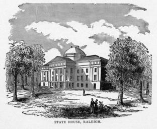 | Keywords: blackandwhite monochrome outdoor drawing black and white State House, Raleigh (4 3/16 x 3 7/16), which is an exterior view of present Capitol Building. From Original Prints, Audio Visual Materials, Special Collections, State Archives of North Carolina. State House, Raleigh (4 3/16 x 3 7/16), which is an exterior view of present Capitol Building. From Original Prints, Audio Visual Materials, Special Collections, State Archives of North Carolina. | ||||
