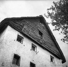 Keywords: Opaž na hiši, Pečine 1954.jpg Opaž na hiši Pečine streha/f0000011339 1954-08 creator Fanči Šarf watermark PD-Slovenia 1954 in Slovenia Pečine Historical images of houses in Slovenia Roofs in Slovenia Photographs by Fanči Šarf