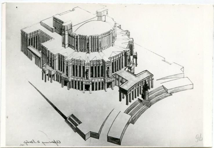 | Keywords: Opera and Ballet Theatre in Minsk. Project. perspective geometry.jpg  ru Теат опе ы и балета в  инске П оект Аксономет ия http //www hata by/architecture/iosif_langbard_minskaya_opera-4959/ Иосиф Лангба д 1934 Opera and Ballet Theatre Minsk PD-Belarus |