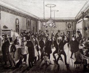 | Keywords: Operakällaren en afton på 1840-talet.jpg en Operakällaren in Stockholm a night in the 1840s sv Operakällaren en afton på 1840-talet Det dröjde länge innan kvinnor var välkomna på Operakällaren och Ferdinand Tollins litografi från 1840-talet är befolkad av enbart herrar sånär som på en korggumma som försöker sälja något vid bordet t h Mannen i den ljusa rocken vid bardisken är konstnären själv https //hellbom wordpress com/2008/12/13/ Hellbom's weblog Ferdinand Tollin 19th century PD-old Operakällaren Ferdinand Tollin Stockholm in the 1840s Night in Stockholm |