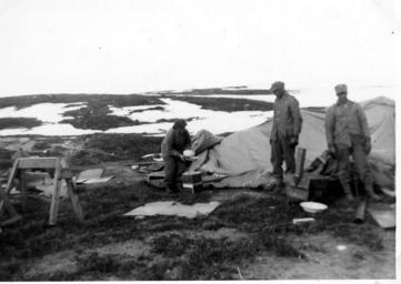 | Keywords: andre verdenskrig andreverdenskrig frigjøring vårslipp 2015 vårslipp2015 kautokeino / guovdageainnu kautokeinoguovdageainnu finnmark norge blackandwhite monochrome outdoor black and white Original bildetekst: En morgen var operasjonsteltet blåst ned. Så var det å samle alt og flytte det til en lunere plass. Fotografiet kommer fra et album gitt til Riksarkivet av sykepleier Marie Lysnes. Våren 1945 deltok hun i opprettelsen av et feltsykehus i Finnmark. Lysnes dokumenterte oppholdet i Finnmark gjennom tekst og bilder. Albumet er en del av privatarkivet etter Marie Lysnes. Arkivreferanse: PA-0873: Lysnes, Marie, Riksarkivet. Original bildetekst: En morgen var operasjonsteltet blåst ned. Så var det å samle alt og flytte det til en lunere plass. Fotografiet kommer fra et album gitt til Riksarkivet av sykepleier Marie Lysnes. Våren 1945 deltok hun i opprettelsen av et feltsykehus i Finnmark. Lysnes dokumenterte oppholdet i Finnmark gjennom tekst og bilder. Albumet er en del av privatarkivet etter Marie Lysnes. Arkivreferanse: PA-0873: Lysnes, Marie, Riksarkivet. |
