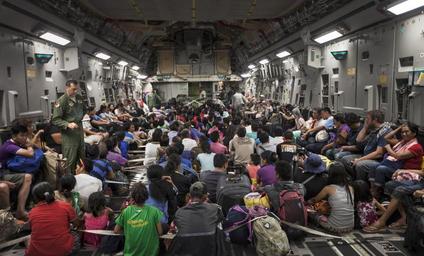 | Keywords: Operation Damayan (10895828864).jpg Displaced Filipino and other international personnel prepare for takeoff inside a C-17 Globemaster III with the 535th Air Lift Squadron out of Hickam Field Honolulu HI for transport to Manila from Tacloban Air Field Nov 15 The supply drop-off and personnel loading was the first use of the C-17 during Operation Damayan able to carry significantly more supplies and displaced persons than the C-130 Hercules aircraft currently being utilized To date the multi-national force has delivered more than 623 000 pounds of relief aid The 3rd MEB is currently supporting the Armed Forces of the Philippines in providing humanitarian aid and disaster relief to areas affected by Super Typhoon Haiyan/Yolanda U S Marine Corps photo by Sgt Jonathan Wright/Released https //www flickr com/photos/marine_corps/10895828864/ Operation Damayan 2013-11-15 19 02 https //www flickr com/people/40927340 N03 Marines from Arlington VA United States PD-USGov United States Marine Corps Official Page https //flickr com/photos/40927340 N03/10895828864 2016-09-03 22 11 40 United States Government Work Uncategorized 2016 September 27 |