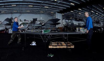 | Keywords: Operation Enduring Freedom DVIDS46137.jpg en Aviation Boatswain's Mate Airman Eric Labrecque right and Airman Raymond Reyes play ping pong in the hangar bay aboard the Nimitz-class aircraft carrier USS John C Stennis CVN 74 during a supply department sponsored moral welfare and recreation MWR fun day MWR division sponsors fun days aboard the ship throughout the deployment helping the crew unwind from long work hours with games and other events The John C Stennis Carrier Strike Group is on deployment in support of Maritime Operations Maritime Operations help set the conditions for security and stability in the maritime environment as well as complement the counter-terrorism and security efforts of regional nations U S Navy photo by Mass Communication Specialist Seaman John Wagner 1999-11-30 Petty Officer 3rd Class John Wagner https //www dvidshub net/image/46137 070522-N-+++++-128 2007-06-05 15 32 ABOARD USS JOHN C STENNIS AT SEA PD-USGov-Military-Navy Operation Enduring Freedom USS John C Stennis CVN-74 Images from DoD uploaded by Fæ |