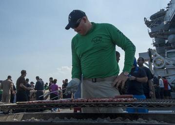 | Keywords: Operation Inherent Resolve 141102-N-UW005-005.jpg en Chief Aviation Electronics Technician Jody Perkins grills food during a steel-beach picnic on the flight deck of the Nimitz-class aircraft carrier USS Carl Vinson Carl Vinson is deployed in the U S 5th Fleet area of operations supporting Operation Inherent Resolve strike operations in Iraq and Syria as directed maritime security operations and theater security cooperation efforts in the region 2014-11-02 CVN 70 https //www dvidshub net/image/1643679 141102-N-UW005-005 2014-11-04 21 54 USS CARL VINSON CVN 70 AT SEA PD-USGov-Military-Navy USS Carl Vinson CVN-70 Images from DoD uploaded by Fæ |