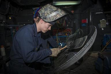 | Keywords: Operation Inherent Resolve 150220-N-HD510-029.jpg en 150220-N-HD510-029 ARABIAN GULF Hull Maintenance Technician Fireman Tyler Fath prepares a fan for welding aboard the aircraft carrier USS Carl Vinson Carl Vinson is deployed in the U S 5th Fleet area of operations supporting Operation Inherent Resolve strike operations in Iraq and Syria as directed maritime security operations and theater security cooperation efforts in the region 2015-02-20 Feb 20 2015 https //www dvidshub net/image/1791279 150220-N-HD510-029 2015-02-27 20 03 USS CARL VINSON ARABIAN GULF AT SEA PD-USGov-Military-Navy USS Carl Vinson CVN-70 Images from DoD uploaded by Fæ |