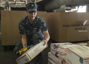 | Keywords: Operation Inherent Resolve 150225-N-KB426-009.jpg en 150226-N-KB426-009 ABU DHABI United Arab Emirates Logistics Specialist 2nd Class Ashley Smith sorts mail in the hangar bay of the aircraft carrier USS Carl Vinson Vinson is deployed as part of the Carl Vinson Strike Group supporting maritime security operations strike operations in Iraq and Syria as directed and theater security cooperation efforts in the U S 5th Fleet area of responsibility 2015-02-26 Feb 21 2015 https //www dvidshub net/image/1791309 150225-N-KB426-009 2015-02-27 20 04 ABU DHABI AE PD-USGov-Military-Navy USS Carl Vinson CVN-70 Images from DoD uploaded by Fæ |
