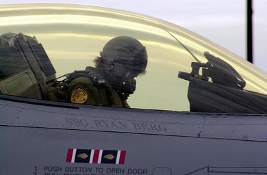 | Keywords: outdoor An F-16 Pilot with the 179th Fighter Squadron, 148th Fighter Wing, Duluth International Airport, takes a final moment to mentally prepare for the extreme possibility of having to shoot down a passenger aircraft during the upcoming CAP (Combat Air Patrol) assignment. The order issued from NORAD on September 12, 2001 as part of Operation NOBLE EAGLE, after the terrorist attacks on the day before at the World Trade Center and the Pentagon. The terrorist hijacked four passenger aircraft and used them as suicide weapons killing thousands on the ground. The Wing flew numerous air sovereignty missions over North American cities in support of the FAA's, first ever, total restriction of commercial flights in the United States airspace. 9/12/2001&lt;/em; catalog.archives.gov/id/6523878 National Archives (accessed 9/3/2016) Scene Camera Operator: MSGT Dean V. Kuhlman, USAF Series: Combined Military Service Digital Photographic Files, 1982 - 2007 Record Group 330: Records of the Office of the Secretary of Defense, 1921 - 2008 An F-16 Pilot with the 179th Fighter Squadron, 148th Fighter Wing, Duluth International Airport, takes a final moment to mentally prepare for the extreme possibility of having to shoot down a passenger aircraft during the upcoming CAP (Combat Air Patrol) assignment. The order issued from NORAD on September 12, 2001 as part of Operation NOBLE EAGLE, after the terrorist attacks on the day before at the World Trade Center and the Pentagon. The terrorist hijacked four passenger aircraft and used them as suicide weapons killing thousands on the ground. The Wing flew numerous air sovereignty missions over North American cities in support of the FAA's, first ever, total restriction of commercial flights in the United States airspace. 9/12/2001</em; catalog.archives.gov/id/6523878 National Archives (accessed 9/3/2016) Scene Camera Operator: MSGT Dean V. Kuhlman, USAF Series: Combined Military Service Digital Photographic Files, 1982 - 2007 Record Group 330: Records of the Office of the Secretary of Defense, 1921 - 2008 <em>An F-16 Pilot with the 179th Fighter Squadron, 148th Fighter Wing, Duluth International Airport, takes a final moment to mentally prepare for the extreme possibility of having to shoot down a passenger aircraft during the upcoming CAP (Combat Air Patrol) assignment. The order issued from NORAD on September 12, 2001 as part of Operation NOBLE EAGLE, after the terrorist attacks on the day before at the World Trade Center and the Pentagon. The terrorist hijacked four passenger aircraft and used them as suicide weapons killing thousands on the ground. The Wing flew numerous air sovereignty missions over North American cities in support of the FAA's, first ever, total restriction of commercial flights in the United States airspace. 9/12/2001</em; <a href="https://catalog.archives.gov/id/6523878" rel="nofollow">catalog.archives.gov/id/6523878</a> National Archives (accessed 9/3/2016)