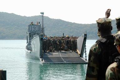 | Keywords: Operations of USS Tortuga during Exercise Cobra Gold 2009 DVIDS154673.jpg en Landing Craft Utility 1631 from Assault Craft Unit 1 arrives in Sattahip Thailand from the forward-deployed amphibious dock landing ship USS Tortuga to offload Marines from the 31st Marine Expeditionary Unit to participate in Exercise Cobra Gold 09 Cobra Gold is an annual Thailand and U S co-sponsored joint coalition multinational military exercise designed to train a Thai U S and Singaporean Coalition Task Force The exercise will also include humanitarian civic action projects with participating nations from Indonesia Japan Singapore Thailand and the U S 2009-02-07 Petty Officer 1st Class Geronimo Aquino https //www dvidshub net/image/154673 090207-N-+++++-040 2009-03-04 01 19 SATTAHIP TH PD-USGov-Military-Navy Sattahip 31st Marine Expeditionary Unit Images from DoD uploaded by Fæ |