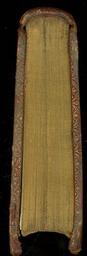 | Keywords: Opere di Hierony. Benivieni - Tail edge (240b15).jpg Style Centrepiece made of small tools Acorn; Caption Tail edge; Colour Red; Edge Gilt exhibition history Decorative Technique Tooled in gold; Cover Material Goatskin includes morocco turkey etc Paste paper endleaves Probably from the Venetian workshop associated with Joseph Smith Crowned initials of King George III added to spine which has been tooled and lettered in gold object history Text 1519; Unspecified; George III King of Great Britain 1760-1820 object type Cc-zero place of creation Binding Italy place of discovery Unspecified British Library image http //www bl uk/catalogues/bookbindings/LargeImage aspx RecordId 020-000017218 ImageId ImageId 56224 Copyright BL Opere di Hierony Benivieni Uploaded with GWToolset Opere di Hierony Benivieni - Tail edge 240b15 http //www webarchive org uk/bldatasets/bindings/240B15TAIL jpg Bookbinding 18th-century bookbinding British Library Bookbindings |