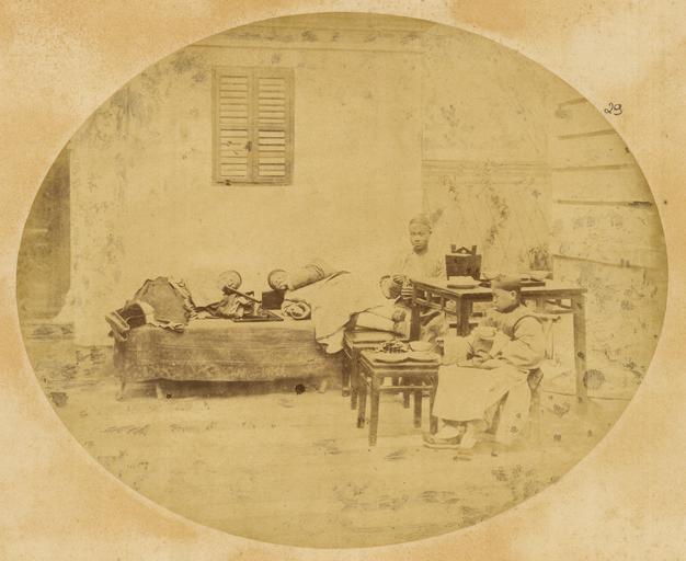 | Keywords: Opium-Smokers. Shanghai, China, 1874 WDL1921.png Artwork ru Боя ский Адольф- иколай Э азмович fr Boiarskii Adolf-Nikolay Erazmovich en Boiarskii Adolf-Nikolay Erazmovich zh 阿道夫 伊拉莫维奇 鲍 尔斯基 pt Boiarskii Adolf-Nikolay Erazmovich ar أدولف-نيكولاي إرازموفيتش بويارسكي es Boiarskii Adolf-Nikolay Erazmovich ru Ку ильщики опиума г Шанхай Китай 1874 г fr Fumeurs d'opium Shanghai en Chine 1874 en Opium-Smokers Shanghai China 1874 zh 吸鸦片的烟民 中国上海,1874 年 pt Fumantes de ópio Xangai China 1874 ar مدخنو الأفيون شانغهاي، الصين، 1874 ru В 1874 1875 гг оссийское п авительство нап авило в Китай учено-то говую экспедицию с целью поиска новых сухопутных ма ш утов к китайскому ынку оценок возможностей для более активной то говли и для асположений консульств и фаб ик а также сбо а инфо мации о Дунганском восстании бушевавшем в то в емя в западных айонах Китая Экспедиция уководителем кото ой был полковник Гене ального штаба Ю А Сосновский состояла из девяти человек капитана атусовского топог афа докто а Павла Яковлевича Пясецкого научного сот удника пе еводчиков с усского и китайского языков т оих казаков и фотог афа экспедиции Адольфа Э азмовича Боя ского Экспедиция отп авилась из Санкт-Пете бу га в Шанхай че ез Улан-Бато онголия Пекин и Тяньцзинь и затем последовала по ма ш уту вдоль еки Янцзы по Великому шелковому пути п оходя че ез оазис Хами к озе у Зайсан об атно в Россию Боя ский сделал около 200 снимков кото ые легли в основу уникальных мате иалов для изучения Китая того в емени Большая часть фотог афий вошла в этот альбом кото ый позже стал частью коллекции Те езы К истины а ии соб анной импе ато ом Б азилии Пед у II и пе еданной им ациональной библиотеке Б азилии <br>Китайцы; Память ми а; ужчины; Опиум; Ку ение т убки fr En 1874-1875 le gouvernement russe organisa une mission commerciale et de recherche en Chine Cette mission avait pour objectif de trouver de nouvelles routes terrestres vers le marché chinois d'étudier les perspectives d'une expansion commerciale de rechercher des sites pour l'installation de consulats et d'usines et de recueillir des informations sur la révolte de Dungan qui faisait alors rage dans les provinces de la Chine occidentale Composée de 9 hommes et dirigée par le lieutenant-colonel Iulian A Sosnovskii de l'état-major général de l'armée cette mission comprenait également un topographe le capitaine Matusovskii un responsable scientifique le Dr Pavel Iakovlevich Piasetskii des interprètes chinois et russes trois sous-officiers cosaques et le photographe de la mission Adolf Erazmovich Boiarskii La mission se déroula de Saint-Pétersbourg à Shanghai en passant par Oulan-Bator Mongolie Pékin et Tianjin Elle longea ensuite le fleuve Yangtsé et suivit la grande Route de la soie à travers l'oasis Hami et jusqu'au lac Zaysan de retour en Russie Adolf Erazmovich Boiarskii prit quelque 200 photographies ce qui constitue une source unique pour l'étude de la Chine de cette période La plupart des photographies prises durant cette mission apparaissent dans cet album lequel rejoignit par la suite la collection Thereza Christina Maria rassemblée par l'empereur Pierre II du Brésil qui en fit don à la Bibliothèque nationale du Brésil <br>Chinois; Mémoire du monde; Hommes; Opium; Fumer la pipe en In 1874-75 the Russian government sent a research and trading mission to China to seek out new overland routes to the Chinese market report on prospects for increased commerce and locations for consulates and factories and gather information about the Dungan Revolt then raging in parts of western China Led by Lieutenant Colonel Iulian A Sosnovskii of the army General Staff the nine-man mission included a topographer Captain Matusovskii; a scientific officer Dr Pavel Iakovlevich Piasetskii; Chinese and Russian interpreters; three non-commissioned Cossack soldiers; and the mission photographer Adolf Erazmovich Boiarskii The mission proceeded from Saint Petersburg to Shanghai via Ulan Bator Mongolia Beijing and Tianjin and then followed a route along the Yangtze River along the Great Silk Road through the Hami oasis to Lake Zaysan back to Russia Boiarskii took some 200 photographs which constitute a unique resource for the study of China in this period Most of the photographs are included in this album which later became part of the Thereza Christina Maria Collection assembled by Emperor Pedro II of Brazil and given by him to the National Library of Brazil <br>Chinese; Memory of the World; Men; Opium; Pipe smoking zh 1874-1875 年,俄罗斯政 向中国派出 支科学和贸易 察团, 察经由陆路进军中国市 的新 径,调查贸易的增长前景, 寻找合 的 方建立领事馆和工厂,并收集当时席卷中国西部 多个 区的陕甘回民起义的相关信息 (译注:陕甘回民起义是发生 中国 19 世纪清 同治年间的 战争和动乱 ) 