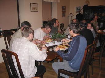 Keywords: Oplatek 2005 Spaghetti.JPG Wikimedia Polska meetup December 2005 Spaghetti was very tasty ;- 2006-12-10 own assumed Polimerek Wikimedian meetups in Poland in 2005 People eating spaghetti Spaghetti in Poland
