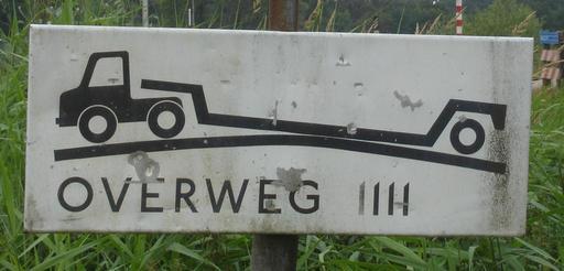 Keywords: Oplegger op overweg.JPG en Warning for lorry omn level crossing nl Waarschuwing voor vrachtauto op overweg own Handige Harrie 2011-07-09 PD Cc-zero Level crossing signs Truck-related road signs Grounding danger warning signs