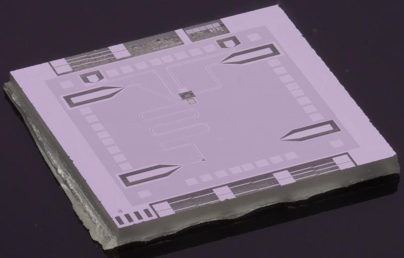 | Keywords: Optics (5940494627).jpg NIST's optics table on a chip is a superconducting circuit on a square sapphire chip about 6 millimeters wide Scientists use the chip to place a single microwave photon in two frequencies or colors at the same time The photon is prepared by an artificial atom small yellow square in the middle of the chip The arrow shape at the lower left connects to a transmission line used to tune the SQUID small black area near the point of the arrow The SQUID couples together two resonant frequencies of the cavity meandering line and the photon oscillates between different superpositions of those frequencies Credit D Schmidt/NIST Disclaimer Any mention of commercial products within NIST web pages is for information only; it does not imply recommendation or endorsement by NIST Use of NIST Information These World Wide Web pages are provided as a public service by the National Institute of Standards and Technology NIST With the exception of material marked as copyrighted information presented on these pages is considered public information and may be distributed or copied Use of appropriate byline/photo/image credits is requested https //www flickr com/photos/usnistgov/5940494627/ Optics 2011-06-16 14 29 https //www flickr com/people/63059536 N06 National Institute of Standards and Technology PD-USGov National Institute of Standards and Technology https //flickr com/photos/63059536 N06/5940494627 2016-09-07 02 32 13 United States Government Work Uncategorized 2016 September 27 |