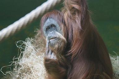 Keywords: orang utan monkey ape female primate thinking animal world animals