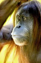 Keywords: orang utan monkey forest human borneo island borneo ape red threatened thoughtful view strictly protected