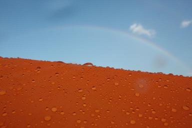 Keywords: orange drop rainbow water rain sunny day closeup drops day
