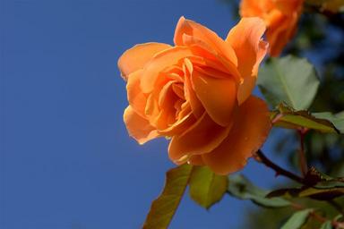 Keywords: orange rose blossom floral fresh nature colorful flower yellow color petal botany green sky blue bloom plant natural garden leaf summertime