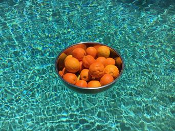 Keywords: orange swimming pool metal bowl water