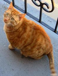 | Keywords: Orange Tabby Cat On Balcony.jpg A common tabby cat with its distinctive orange stripes Picture was taken with a Canon Power Shot SD450 Digital Elph camera and modified using a Paint Shop program on a laptop computer own 2007-04-09 Brian Adler 12 49 27 June 2007 UTC Sitting cats Red tabby cats Mackerel tabby cats Cats facing left Cats on balconies Cats looking at viewer Cats looking up | ||||