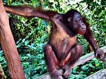 Keywords: orangutan monkey jungle trees animal face hair wild look forest nature chimp