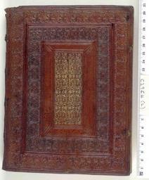 | Keywords: Oratio de variarum linguarum cognitione. -bound with 1 other work- - Upper cover (c29f4).jpg Style Panel design; Caption Upper cover; Colour Brown; Edge Unspecified exhibition history Decorative Technique Tooled in blind Tooled in gold; Cover Material Goatskin includes morocco turkey etc This shelf mark is awaiting correction May be Italian object history Text 1518; Leipzig; Unspecified object type Cc-zero place of creation Binding Italy place of discovery Unspecified British Library image http //www bl uk/catalogues/bookbindings/LargeImage aspx RecordId 020-000007288 ImageId ImageId 43249 Copyright BL Oratio de variarum linguarum cognitione bound with 1 other work Uploaded with GWToolset Oratio de variarum linguarum cognitione bound with 1 other work - Upper cover c29f4 http //www webarchive org uk/bldatasets/bindings/7770_4 jpg Bookbinding 16th-century bookbinding |