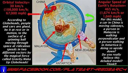 | Keywords: orbital velocity nasa news flatearth flat earth space hoax sun moon yin yang yinyang god reality plane universe curve curvature nocurve bible truth dome According to globeheads, people and cars are glued, be it at rest or in motion, to the surface of a spinning ball moving through space at ridiculous speeds in two different vectors by the magical force called gravity. Wake up globeheads! Per this model, China is moving sideways, a person in Malaysia is walking perpendicular and a person walking in Antarcticais doing so upside down? Do you really believe this deluded model? Think! FlatEarth meme collected by A.J. Wilson of iPressThis at FlatEarth.Online, made by others. Credit to fb.com/flatearthresearch According to globeheads, people and cars are glued, be it at rest or in motion, to the surface of a spinning ball moving through space at ridiculous speeds in two different vectors by the magical force called gravity. Wake up globeheads! Per this model, China is moving sideways, a person in Malaysia is walking perpendicular and a person walking in Antarcticais doing so upside down? Do you really believe this deluded model? Think! FlatEarth meme collected by A.J. Wilson of iPressThis at FlatEarth.Online, made by others. Credit to fb.com/flatearthresearch |