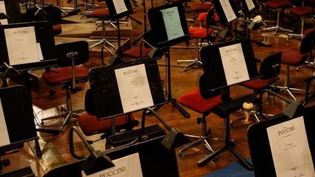 Keywords: orchestra music stand music orchestra pit opera puccini tosca symphony classic stage
