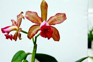 Keywords: orchids blossoms flowers red yellow petals blooms blooming flowering plants branches stems floral buds shoots decorative ornamental gardens gardening spots dots bright colorful fresh exotic delicate soft still life