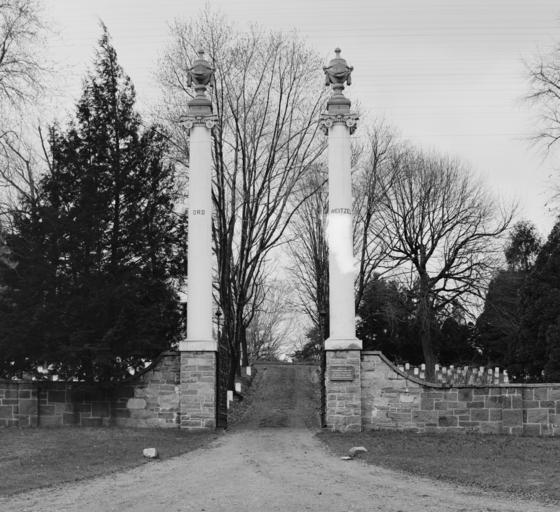 | Keywords: Ord-Weitzel Gate - Arlington National Cemetery - Arlington VA - 1900.jpg en Looking west at the Ord-Weitzel Gate circa 1900 on the northeast border of the northeast corner of Arlington National Cemetery in Arlington County Virginia in the United States The gate was named for American Civil War Major Generals Edward Ord and Godfrey Weitzel Completed in 1879 it was constructed from two Doric columns salvaged from the demolition of the United States War Department Building now the site of the Eisenhower Executive Office Building The gate was initially not dedicated to anyone But by 1902 with the passing of both Ord and Weitzel their names were inscribed into each column of the gate Arlington National Cemetery's easternmost boundary had since 1864 been the Arlington Ridge Road what is now present-day Eisenhower Drive In 1971 the cemetery expanded eastward to its present boundary the Jefferson Davis Highway At that time the Ord-Weitzel Gate was dismantled and the columns marble pediments and iron gates put into outdoor storage Unfortunately the gate was severely damaged during its dismantling It was further damaged by inappropriate outdoor storage on the cemetery grounds and has been heavily vandalized http //www loc gov/pictures/item/det1994021737/PP/ Detroit Publishing Company Detroit Publishing Company Collection Library of Congress 1900 PD-Detroit Former memorials at Arlington National Cemetery Black and white photographs |