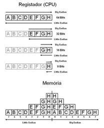 Keywords: Ordem de Bytes.PNG pt Tipos de ordenação de bytes Extremidade Menor Primeiro e Extremidade Maior Primeiro own Carlos Rosa PT 2008-06-03 cc-by-sa-3 0 GFDL Endianness
