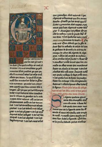 | Keywords: Ordenamiento de Alcalá (1348) primera página.png Ordenamiento de Alcalá promulgado por Alfonso XI de Castilla en 1348 Publicado en 41 hojas de pergamino de 325 x 255 x 20 mm Consta de 131 leyes estructuradas en 32 títulos que recogen varias textos legislativos cada uno Sirvió para homogeneizar y sistematizar algunas disposiciones jurídicas medievales y establecer la primacía en el orden de prelación del derecho real sobre cualquier otra norma de carácter territorial o local <ref>http //www madrid org/bvirtual/BVCM002650 pdf Ordenamiento de Alcalá En Alcalá una ciudad en la historia Madrid Dirección General de Patrimonio Histórico Consejería de Cultura y Turismo Comunidad de Madrid; 2008 p 210-1 ISBN 978-84-451-0115-5</ref> 1348 Biblioteca Nacional de España Alfonso XI de Castilla Escribano e iluminador Nicolás González PD-old-70-1923 other versions PD-old-70-1923 Referencias reflist 1348 documents 1348 in Spain Alfonso XI of Castile in paintings Books published in Alcalá de Henares Documents in Spanish Legal documents of Spain Legal history of Spain Law of Spain Title pages in Spanish Title pages from Spain Alcalá de Henares in the 14th century 14th-century books about Spain 14th-century illuminated manuscripts Illuminated manuscripts created in Spain Manuscripts in Spanish Gothic paintings in Spain Files by User Raimundo Pastor portadas Manuscripts in the Biblioteca Nacional de España |
