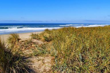 Keywords: oregon beach seashore sand beach grass water nature