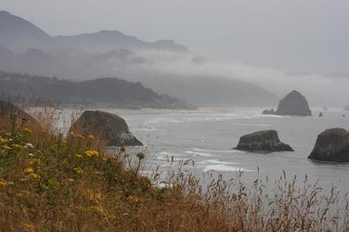 Keywords: oregon coast sea outdoor breathtaking clear park green seaside rocks travel colourful amazing view pacific ocean stacks trees sand horizon summer waves clouds oregon coast recreation wood forest beach colorful mountai