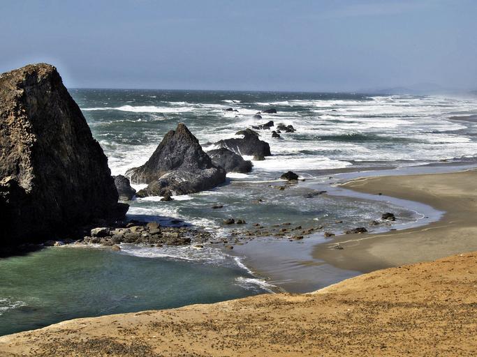 Keywords: oregon coast shoreline water waves nature scenery landscape usa
