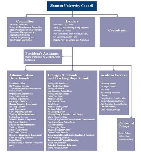 | Keywords: Organization Structure of Shantou University (As of May 2013).jpg Uploaded with en wp UW marker 2013 09 16 The picture shows the organization of structure of Shantou University as of May 2013 Shantou University website http //www stu edu cn/index php option com_content view article id 123 Itemid 105 lang zh 2013-06 Shantou University http //www stu edu cn/index php option com_content view article id 123 Itemid 105 lang zh ;Other information en This file is taken from the Shantou University Annual Report 2013, in page 106 http //www stu edu cn/index php option com_content view article id 123 Itemid 105 lang zh Shantou University Uncategorized 2013 September 16 |